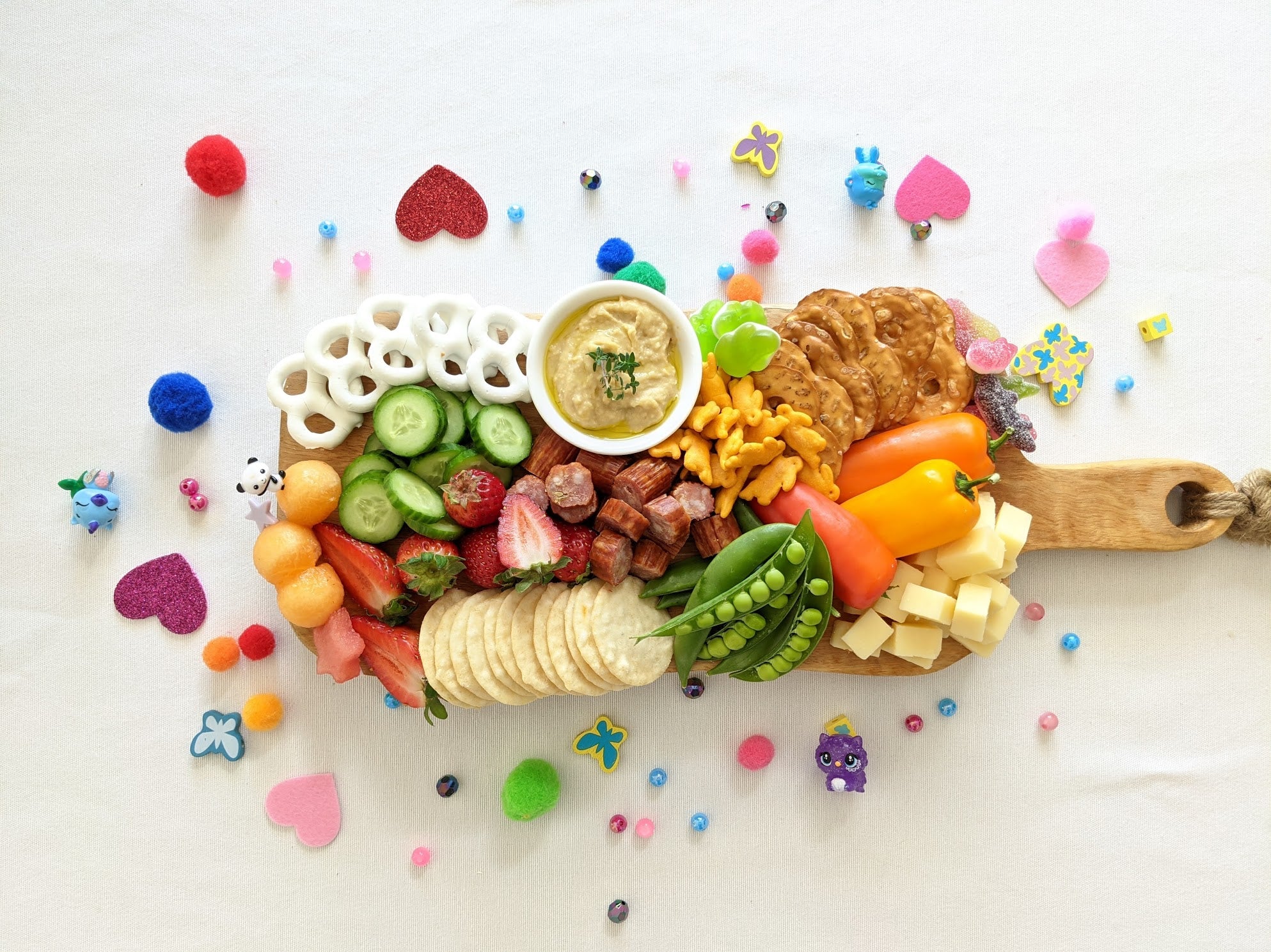 The box is filled with a child-friendly meats, cheeses, dips, crudités, seasonal fruits, crackers, dried fruit, pickles, and sweet treats- all thoughtfully curated to give your child their very own culinary adventure in a box.